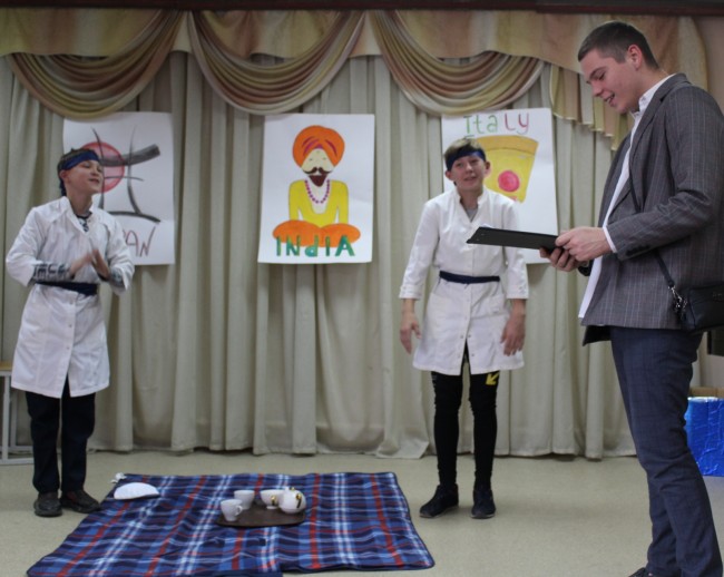…Я играл роль корреспондента и итальянца, больше всего мне понравилась наша сценка с Данилом. Когда мы репетировали её, мы очень много смеялись. Я открыл в одноклассниках, что они хорошие артисты, что все стараются выучить слова и выступить лучше, чем другие. Это как соревнования. Но все молодцы, выступили замечательно.