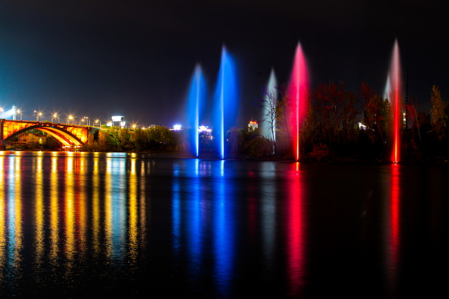 Знаменитые красноярские фонтаны, бьющие из Енисея