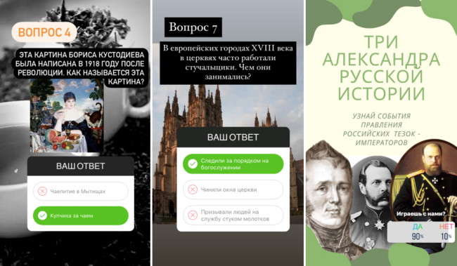 Я начал делать викторины и тесты для закрепления материала в своём аккаунте. Назвав это HistorianStories («исторические истории»), я увидел, как быстро этот формат заинтересовал не только учеников, но и их родителей, моих друзей и коллег.