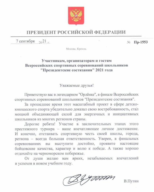 Закрытие «Президентских состязаний» состоится 22 сентября, «Президентских спортивных игр» – 24 сентября.