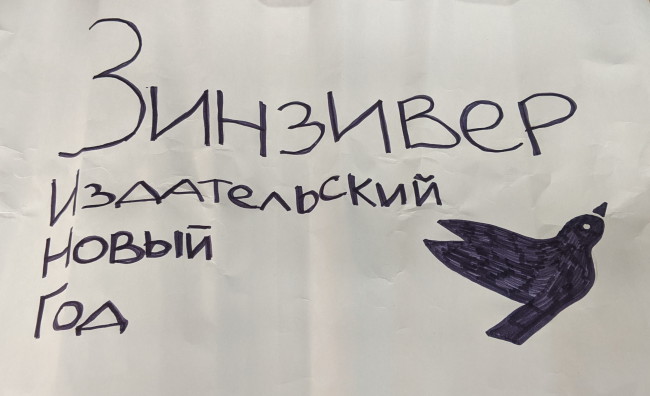 Уже третий раз «Зинзивер» проводит «Издательский новый год» для учеников, учителей, родителей и друзей школы. Жанр этот необычный. В нем совмещаются и праздник, и театральное действо, и маленькая выставка достижений школьного хозяйства за год. А «издательский» он – потому, что среди основателей школы много издательских работников, и в школе традиционно любят и чтут все, что связано с полиграфией.
