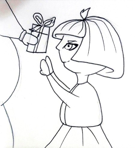 Однажды я решила нарисовать его со Снегурочкой, подарить рисунок. Ведь он никогда не забывал дарить подарки, поэтому мне хотелось сделать ему подарок в ответ. После того как рисунок был закончен, я положила работу на тумбочку возле моей кровати и пошла спать. Утром рисунок остался на месте, его никто не забрал. Я расстроилась, но на следующий день рисунка уже не было, и я была уверена в том, что его забрал Дед Мороз. А после Нового года, когда я искала листок для рисования, обнаружила свой подарок в пачке бумаги. После чего была практически уверена в том, что Деда Мороза не существует».