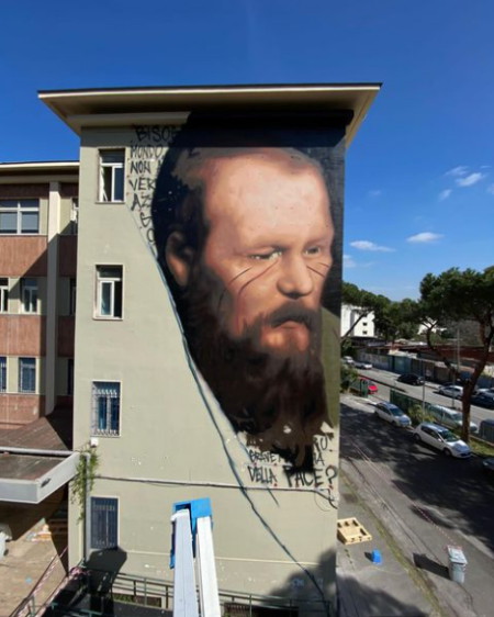 Итальянский художник Йорит Агоч нарисовал мурал (от испанского muro — «стена», разновидность монументальной живописи на габаритных зданиях и других архитектурных сооружениях) с изображением Федора Достоевского на стене Технико-индустриального института в пригороде Неаполя. Это реакция на решение Миланского университета Бикокка закрыть курс лекций о русском писателе, пишет Readovka.