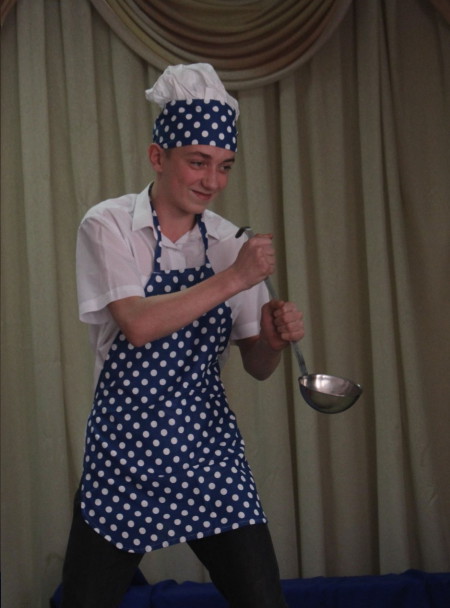 …Мне очень понравилось выступление слесарей про профессию сварщика и понравилась битва повара против сварщика. Понравились костюмы токарей и швей. Моя роль была, конечно, не самой главной – я был котом.