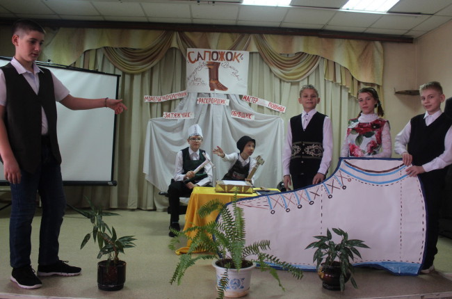 …Я смотрел представление 6-го «А» класса о профессии «сапожник». Мне очень понравился их артистизм и декорации.