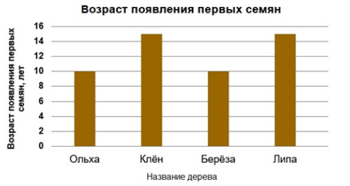 Еще один пример задания для пятиклассников: представлены диаграммы, на основании которых нужно рассказать о берёзе в сравнении с другими деревьями.