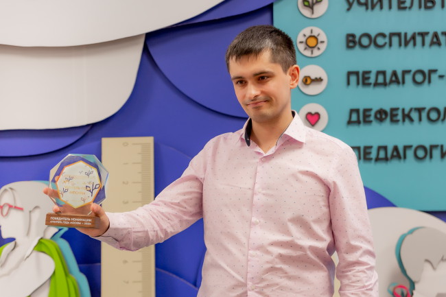 Победителем в направлении «Учитель-лидер» стал учитель математики школы № 1574 Денис Слонимский, который представил проект по выстраиванию системы преемственности обучения в образовательной организации – от детского сада до выпускного класса. Проект включает в себя квизы и квесты, театрализованные выступления, экскурсии, принять участие в которых могут не только ученики школы, но и жители всего Тверского района Москвы.