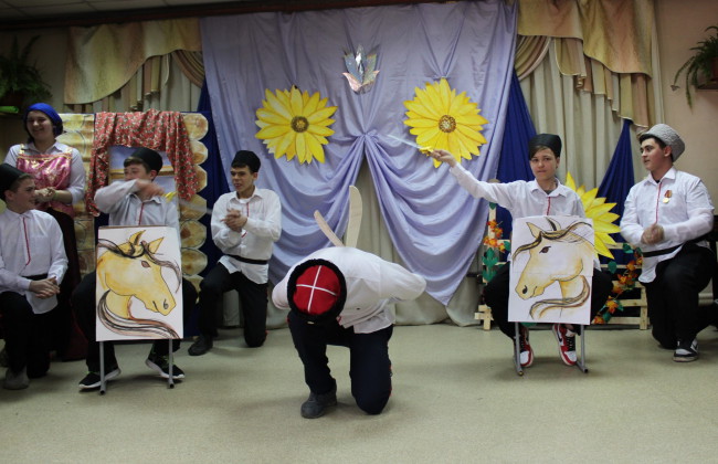 …«Далеко-далеко у подножия небес стоит Дагестан – вершина чудес». Так называлось наше представление. Я считаю, что самый яркий костюм был у Данилы (Шейдула). У нас на выступлении все были лучшими артистами. Нам помогали Наталья Олеговна, Валерия Владимировна.