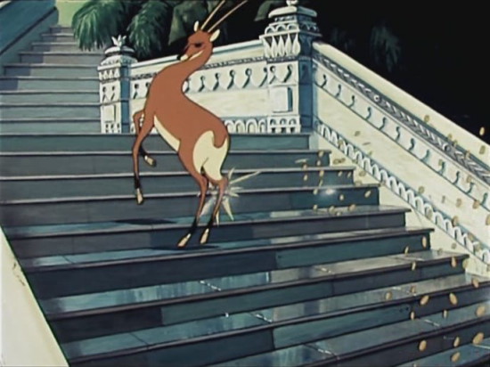 Мультипликационные герои по-своему, но всё же трудятся. Даже когда им улыбается удача и деньги сами падают на голову, эту удачу приходится ещё заслуживать, и нередко в смертельной схватке с врагом (в мультфильмах это, как правило, жадный богач). Так произошло у Маленького братца из индийской сказки «Золотая антилопа».
