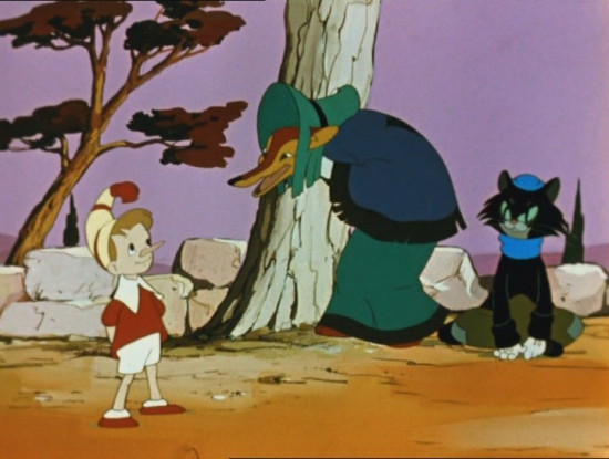 Мультфильм по сказке Алексея Толстого про деревянную куклу – доверчивого мальчика, который начал свой путь к большому и доброму «спасти друзей» от простого «куплю куртку для папы Карло, а для себя – азбуку». Он так сильно хотел заработать, что доверился двум мошенникам.