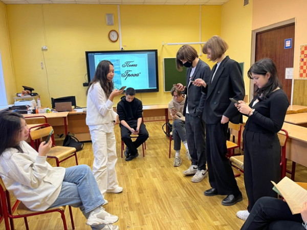Ребята распределили роли, окрыли тексты и начали играть. Поначалу во всех классах присутствовал дискомфорт: детям было непривычно сидеть без парт и учебников, лишь с текстом перед глазами. Кто-то сразу же смог вжиться в роль, кому-то было сложнее преодолеть стеснение. Детям нужно время, чтобы привыкнуть и осознать – так тоже можно учиться, и мы не делаем ничего плохого.