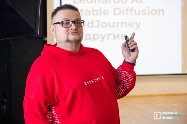 Аудитории колледжа в этот день превратились в мастерские, в которых всем желающим предоставлялась возможность проверить свои способности в программировании роботов, в проведении интерактивных уроков, позаниматься в мультимедийных лабораториях, а еще послушать лекцию разработчика проекта «Города России глазами нейросети» Кирилла Соловьева.