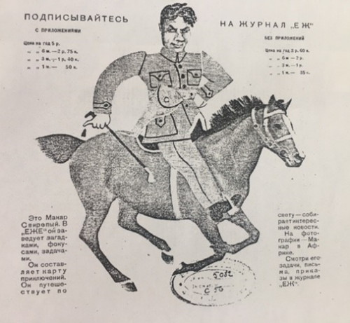 Олейников много печатался в «Еже», но читателям был больше известен под своим «сценическим псевдонимом» – Макар Свирепый. Этот постоянный персонаж журнала, даже внешне похожий на Олейникова, изображался на боевом коне Гвоздике. Вместе они участвовали в удивительных приключениях. Откуда взялся этот образ?
