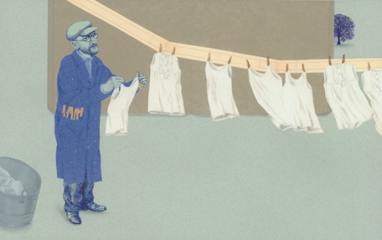 Удивительна изобретательность, с которой Хмелевская обыгрывает линованные листы. В ее книге они могут становиться чем угодно – качелями, клеткой для птицы, ступеньками, разбитым окном, стопкой книг, бельевой веревкой, батареей, на которой сушатся детские варежки, перилами балкона, на котором стоит Старый Доктор; а в самом конце – вагоном товарного состава…