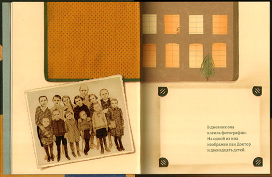 Среди практически всех заслуживающих внимания книг взгляд выхватил одну, выделяющуюся своей трудно определимой «неформатностью». Там на многих картинках был изображен немолодой бородатый неатлетического телосложения человек в очках, с умным и печальным взглядом, всегда в окружении детей. На картинках почти все время что-то происходило, но, чтобы понять что именно, надо было охватить взглядом весь разворот, мысленно соединить оригинальную иллюстрацию со стилизованной страницей дневника, групповой фотографией, стилизованной же открыткой или конфетной оберткой. Простор для фантазии, поддержанный документальными артефактами, задающими ей направление и рамки. Многослойные картинки в книге не отпускали, заставляя вглядываться в них и отыскивать в прихотливых сюжетах, щедро придуманных художником, все новые повороты и оттенки смыслов.