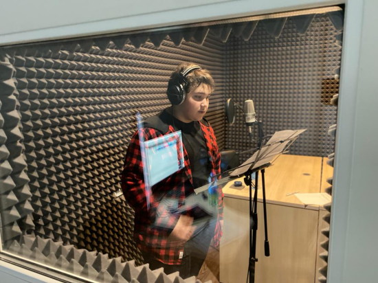 Десятиклассник школы № 1368 Артем Садян в профессиональной студии звукозаписи Городского методического центра на английском языке озвучивает воспоминания москвичей об их жизни в столице в годы Великой Отечественной войны. Несмотря на то, что английский не профильный предмет для ученика инженерного класса, произношение у Артема безупречное. Именно им десятиклассник покорил сердца жюри и прошел серьезный отбор – в конкурсе принимали участие юные чтецы со всей Москвы.