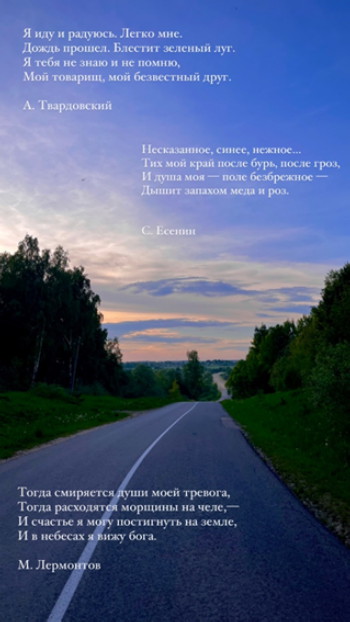 Совсем недавно мы с ребятами попробовали новое творческое задание, которое обобщило изучение целого поэтического блока. Я предложила им описать какое-либо значимое событие или предмет строками из стихотворений нескольких поэтов, при этом подобрав к своей работе подходящую иллюстрацию. Работы получились просто потрясающими. Очень многие ребята использовали свои фотографии, они смогли рассказать маленькую историю, используя строки чужих стихотворений.