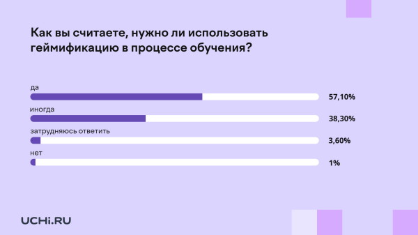 Образовательная онлайн-платформа Учи.ру провела исследование среди учителей, чтобы выяснить их отношение к применению игровых механик в образовательном процессе. Всего в опросе приняли участие 1130 действующих педагогов.