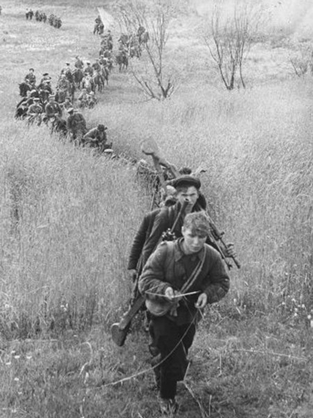 Он стал снимать бойцов в лесу за чтением газет, которые мы привезли из редакции. Я впервые с удивлением увидел, как работает фотокорреспондент. До сих пор я наивно представлял себе, что он просто-напросто ловит разные моменты жизни и снимает. Но Трошкин десять раз пересаживал бойцов так и эдак, переодевал каски с одного на другого, заставлял их брать в руки винтовки. В общем, мучил их целых полчаса, – Константин Симонов.