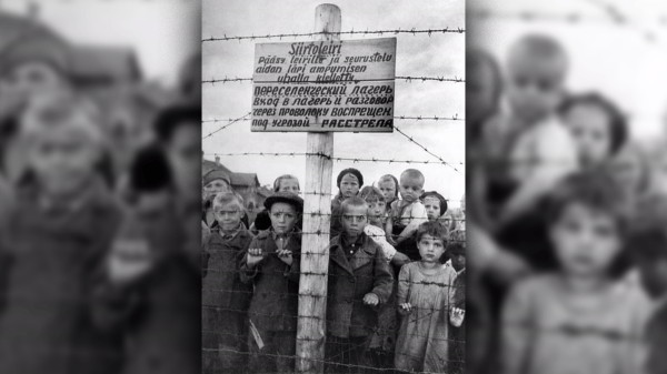 Эту фотографию Санько сделала в концлагере в Петрозаводске. Историю ее создания автор описывала так: «Испуганные лица. Они с недоверием смотрели на меня недетскими глазами. Я пыталась с ними заговорить, но они упорно не отвечали. Сделав несколько фотографий, я прошла в ворота. И вдруг какая-то девочка сказала мне: «Тетя!» Ребята плакали, повторяли сквозь слезы: «Мама…» Снимок стал одним из обвинительных свидетельств против нацистов на Нюрнбергском процессе.