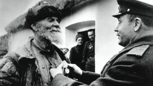 Этот снимок опубликовали в «Огоньке». В 1944 году Георгию Зельме написал директор одного из уральских заводов. Он узнал на фото своего отца Михаила Помпика. Зельма вспоминал: «Снимок этот известен широко, был на многих выставках – генерал прикрепляет медаль на груди бородатого старика. Это и есть герой, Михаил Помпик, старый железнодорожник-стрелочник. Он проследил, куда немцы ставят мины, запомнил проходы в минных полях и показал их командирам наших наступающих частей. Через много лет после войны снова побывал я в тех местах, нашел знакомую будку стрелочника. Ее хозяина уже не было в живых, но на стене под стеклом висел дорогой мне снимок… И хотя на многих выставках он получил почетные дипломы, был напечатан в книгах, самое высокое признание – этот «стенд».