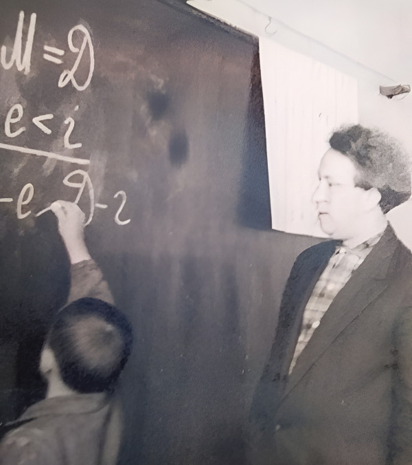 Борис Ефимович Друккер, никогда не проверявший тетради. Он для этого брал двух отличников, а уж они тайно кое-кому исправляли ошибки, и он, видимо, это знал.