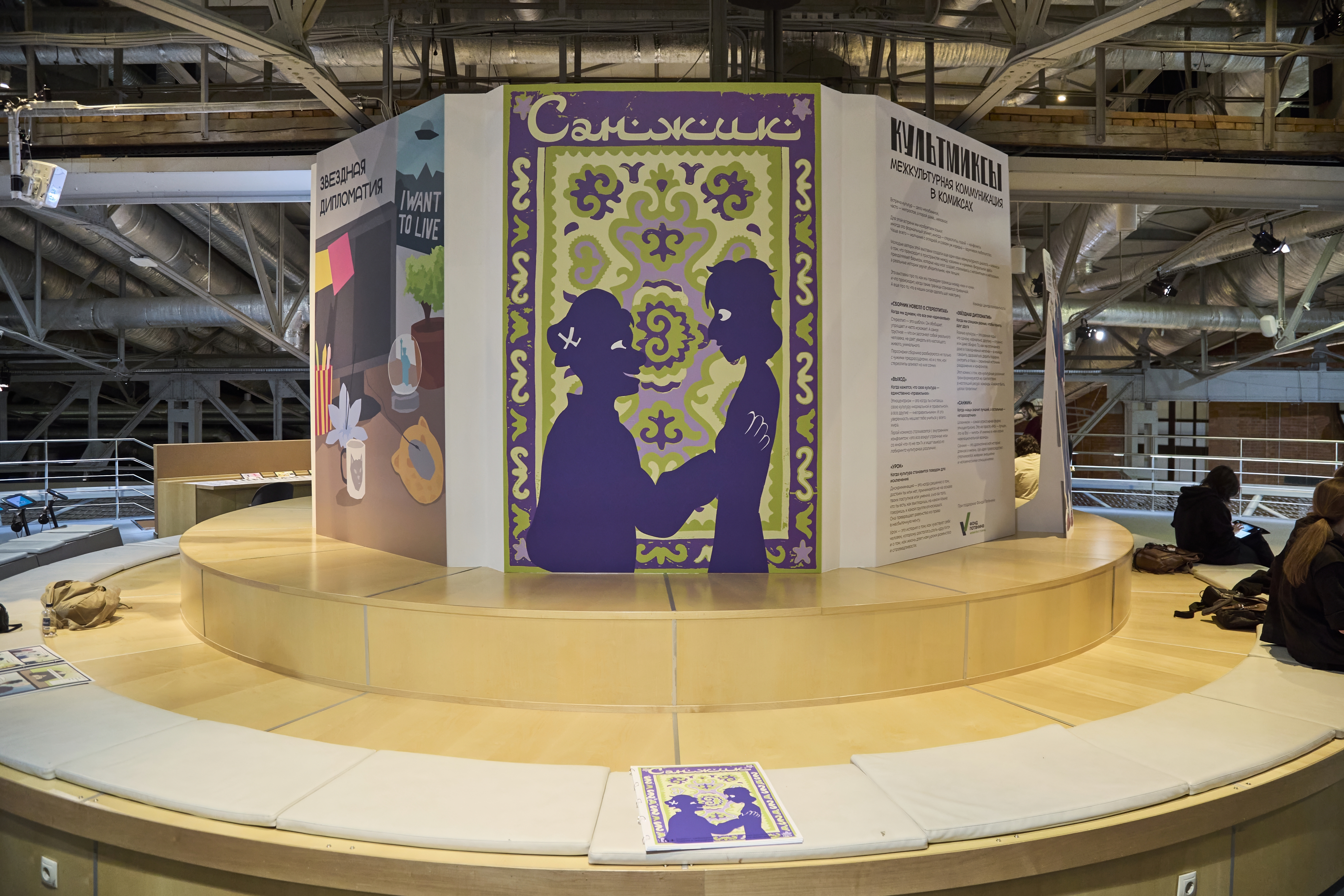 В ноябре в Еврейском музее и центре толерантности открылась необычная выставка «КультМиксы» – пять графических новелл, созданных командами молодых людей от 16 до 23 лет. Каждый комикс рассказывает о проблемах межкультурной коммуникации: этноцентризме, дискриминации, шовинизме, стереотипах и культурной дистанции.