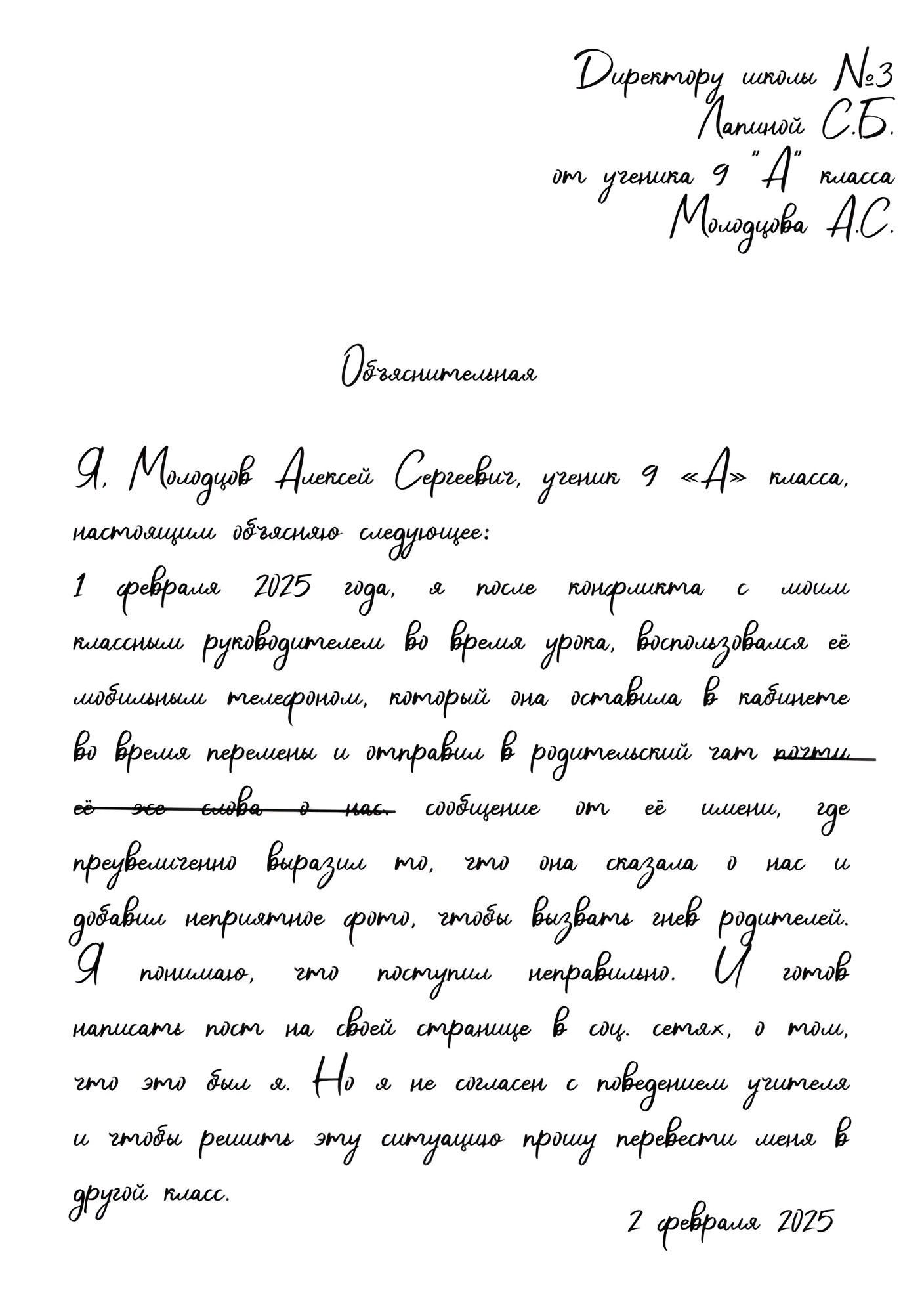 Фигура директора маячила передо мной уже битый час. Пустой лист лежал рядом, в ожидании моих оправданий, извинений и, Бог знает, ещё чего. Эта дура тоже то и дело влетала в кабинет, изображая из себя жертву. Ну-ну, тоже мне жертва. Эта истерика и весь переполох мне и действовали на нервы, и льстили. Ведь причиной всему этому стал я. Именно я, после очередных её воплей, незаметно взял у неё телефон и процитировал в родительский чат её же слова о нас. Ну почти. Сами же говорят – где ваша креативность? А где ещё креативить, как не в социальных сетях?