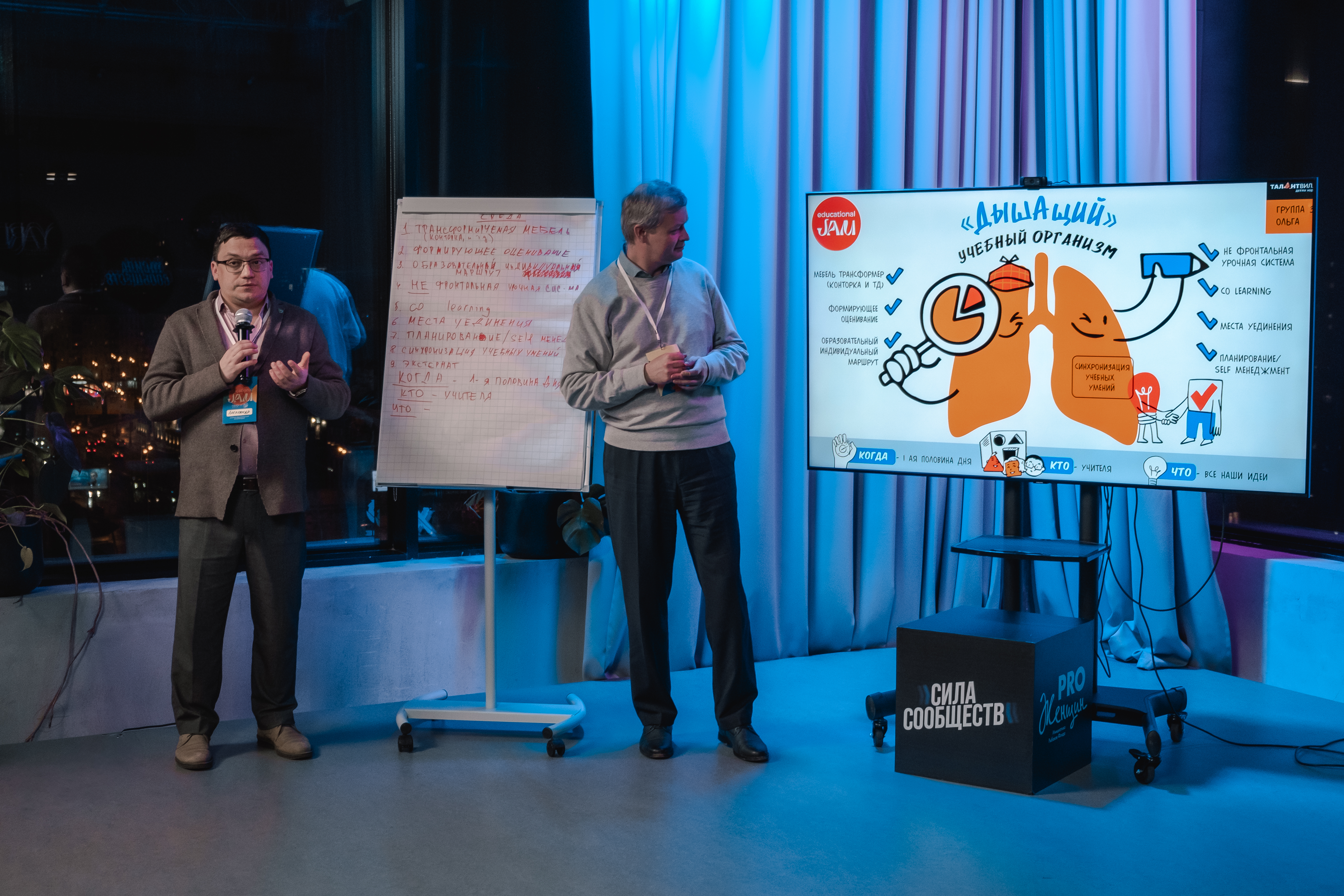 В образовании появился новый формат профессиональных дискуссий и открытого проектирования – Educational JAM. Диалог экспертов напоминает джазовый джем, который собирает на одной сцене музыкантов разного опыта для творческой импровизации. Так и на образовательных джемах встречаются педагоги и директора с разным опытом и из разных образовательных структур, чтобы в совместном творчестве искать решения задач, которыми делятся резиденты джема.