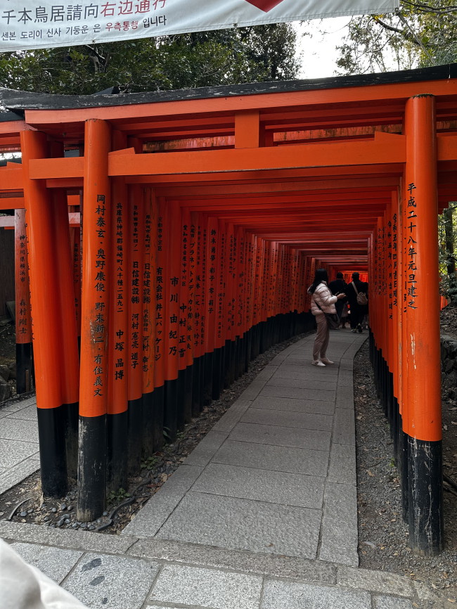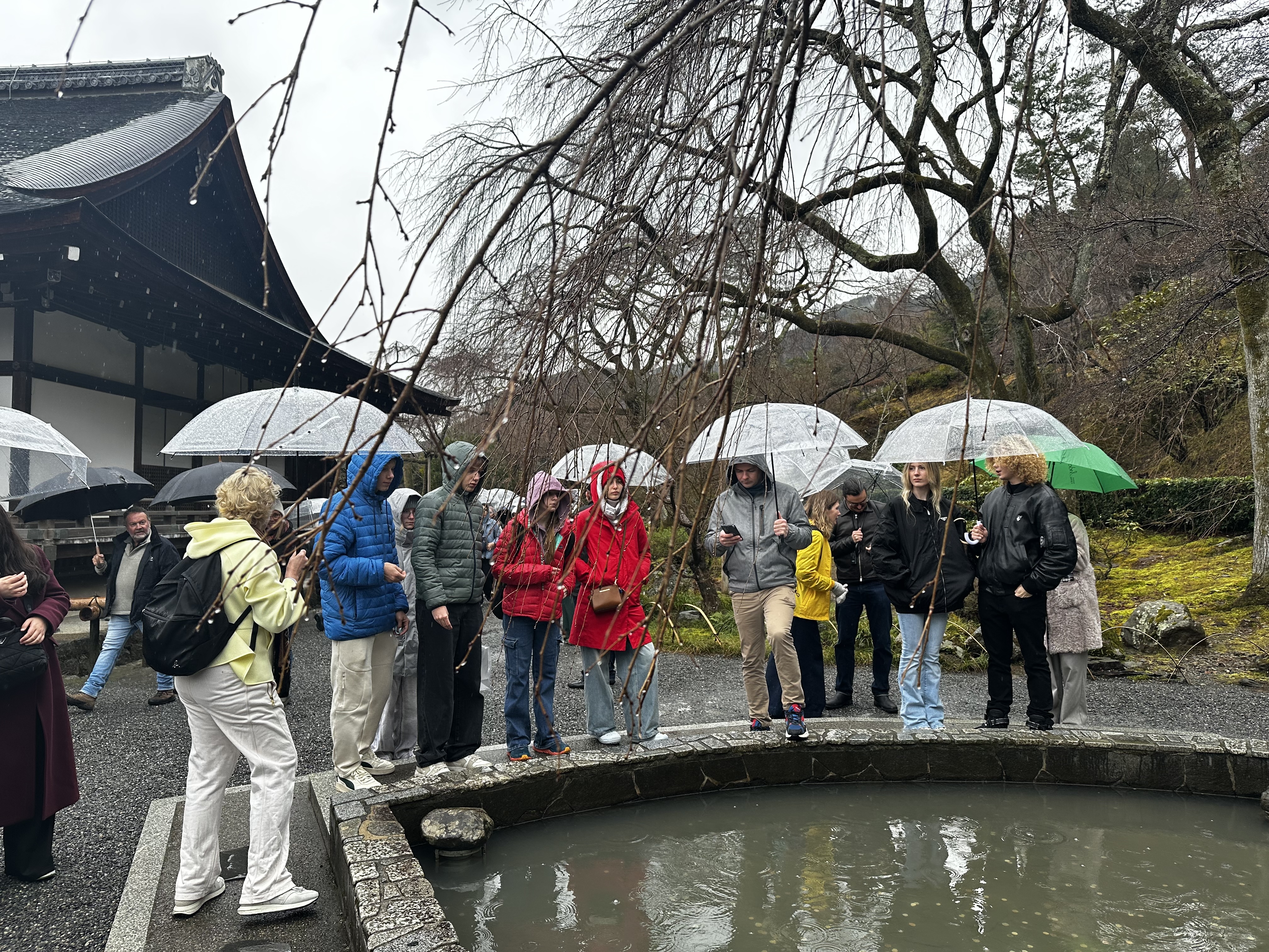 У нас была насыщенная экскурсия, во время которой мы посетили храм Кинкаку-дзи (Золотой павильон), Кинкакудзи (Дзен-буддийский храм), Храм Сандзюсангэндо и Тысячу и одну статую Каннон, а еще святилище Фусими Инари с красными воротами тори, которые использовались для создания гипнотического эффекта в оскароносном фильме «Мемуары гейши», и сад камней Рёан-дзи.