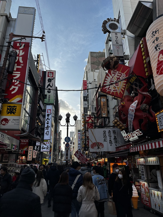 Позже мы пошли на улицу Дотонбори. Мы часто видели ее в интернете, и нам хотелось посмотреть ее вживую, почувствовать шум города.