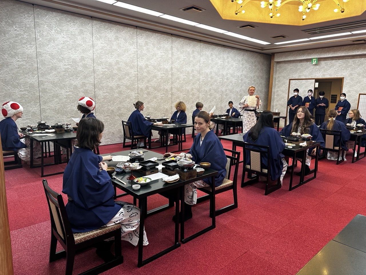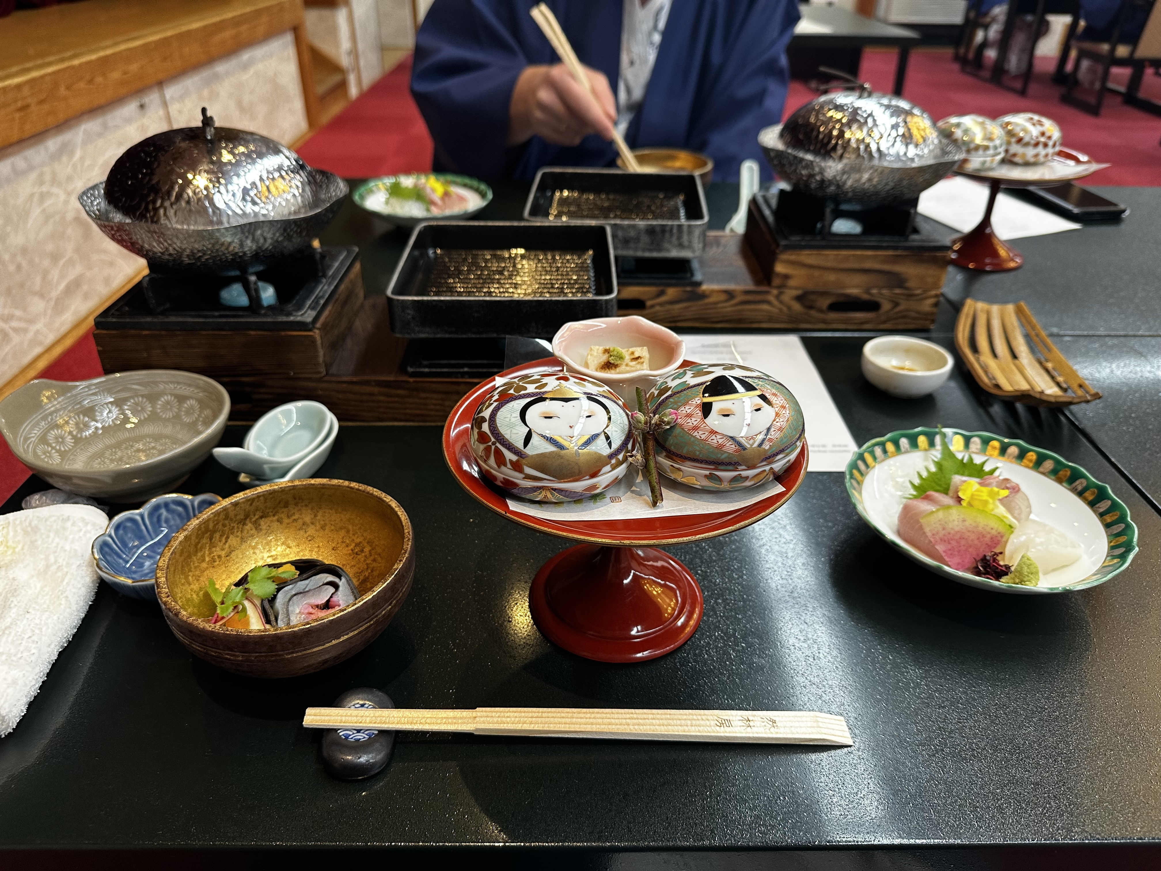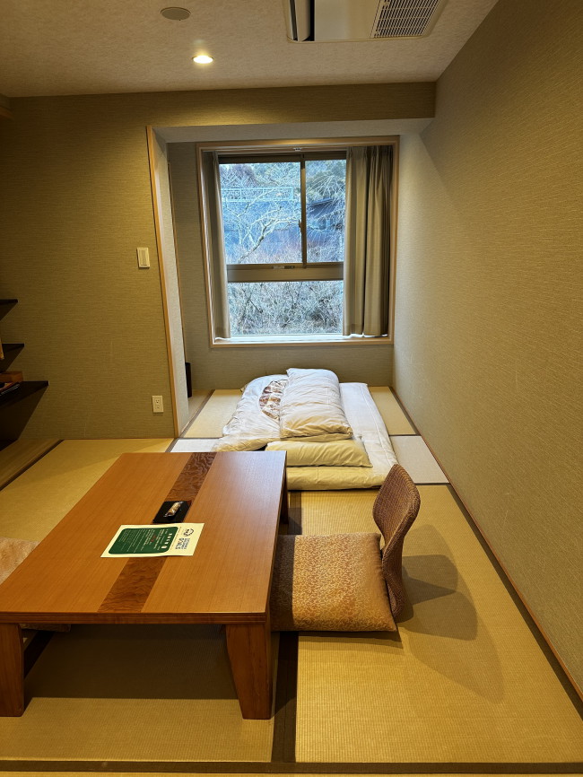 Вечером мы переехали в традиционный японский отель – рёкан, надели традиционную одежду (юкату) и сходили в онсен – общественную баню с горячими источниками. Ну а вечером у нас был традиционный японский ужин в стиле кайсэки.