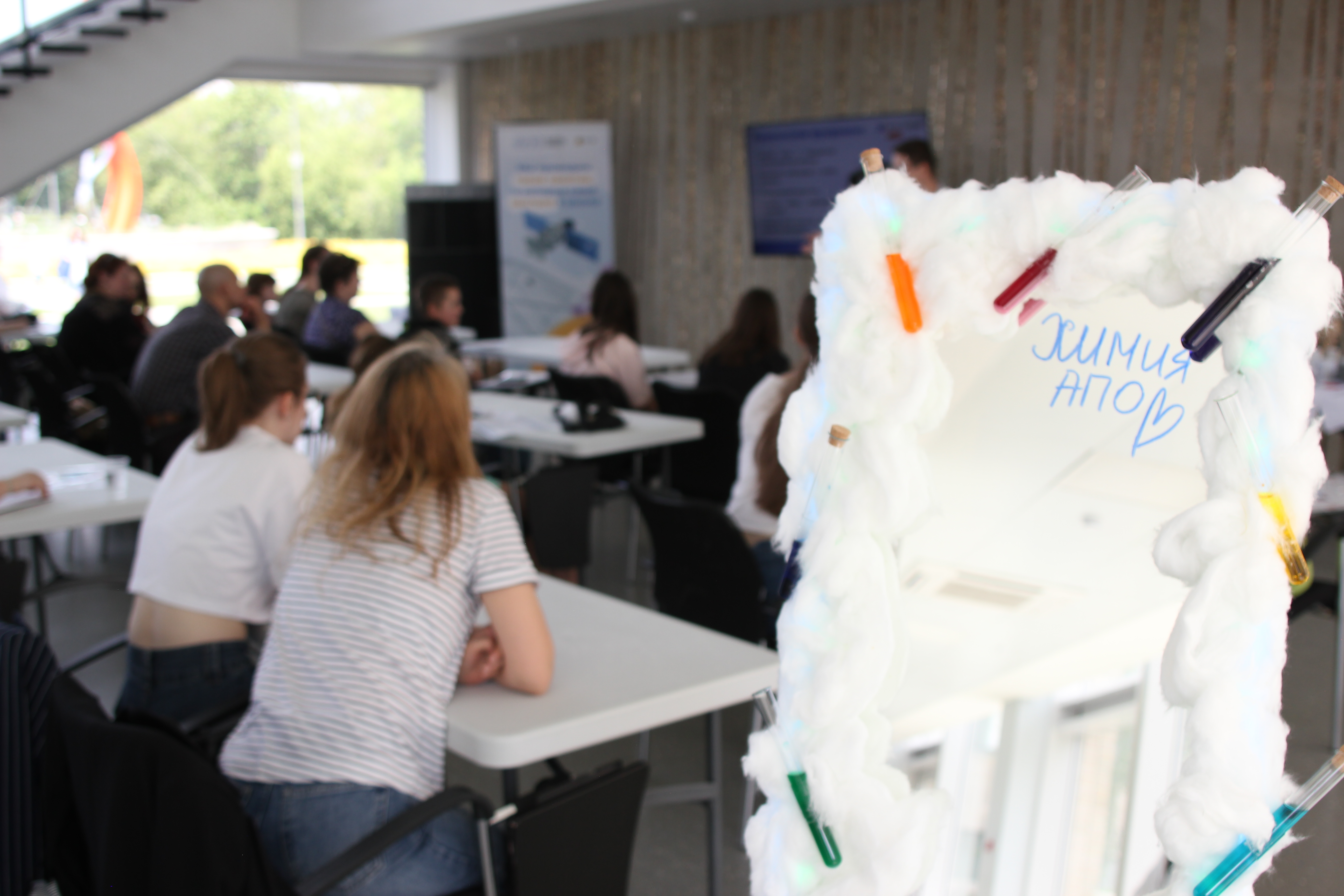 Для юных химиков подготовили цикл интерактивных мастер-классов. Школьники могут провести безопасные опыты и решить химические головоломки. Они соберут молекулы разных веществ и будут соревноваться в расстановке коэффициентов в уравнениях реакций на скорость. На мастер-классе «Агент Менделеев» гости могут раскрыть настоящее детективное дело при помощи химии. Следом за преподавателем из подручных реактивов школьники проведут опыт с невидимыми чернилами и вычислят, кому принадлежат отпечатки пальцев.