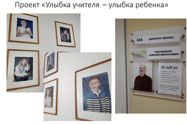 И мы придумали такой интересный проект «Улыбка учителя – улыбка ребенка», когда школа наполняется улыбками тех, кто в ней работает и учится.