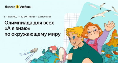 Школа «Вести образования»: Яндекс.Учебник // НовостьОлимпиада «А я знаю» Яндекс.Учебника: как увлечь ребенка русским, математикой и окружающим миром28 сентября стартует онлайн-олимпиада Яндекс.Учебника «А я знаю» по трем предметам для школьников 1–4 классов. 8 сентября